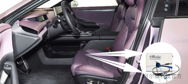 3、將以上兩種傳感器的信號輸出端接入聲音振動采集卡,通過此卡的高精度、低噪聲,以及自帶的IEPE激勵源的功能,實(shí)現(xiàn)汽車乘坐舒適性的關(guān)鍵測試。
